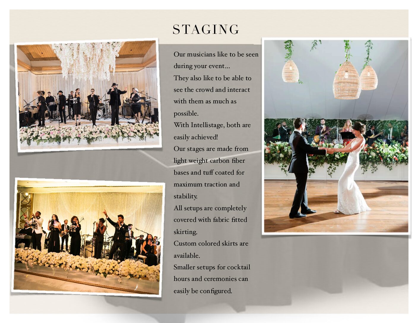 Complete the look of your ceremony with a custom constructed stage. Elevate your bridal party, hosts or other special people to another level. If you want your band above the rest, raise them with a stage for a true musical experience.
