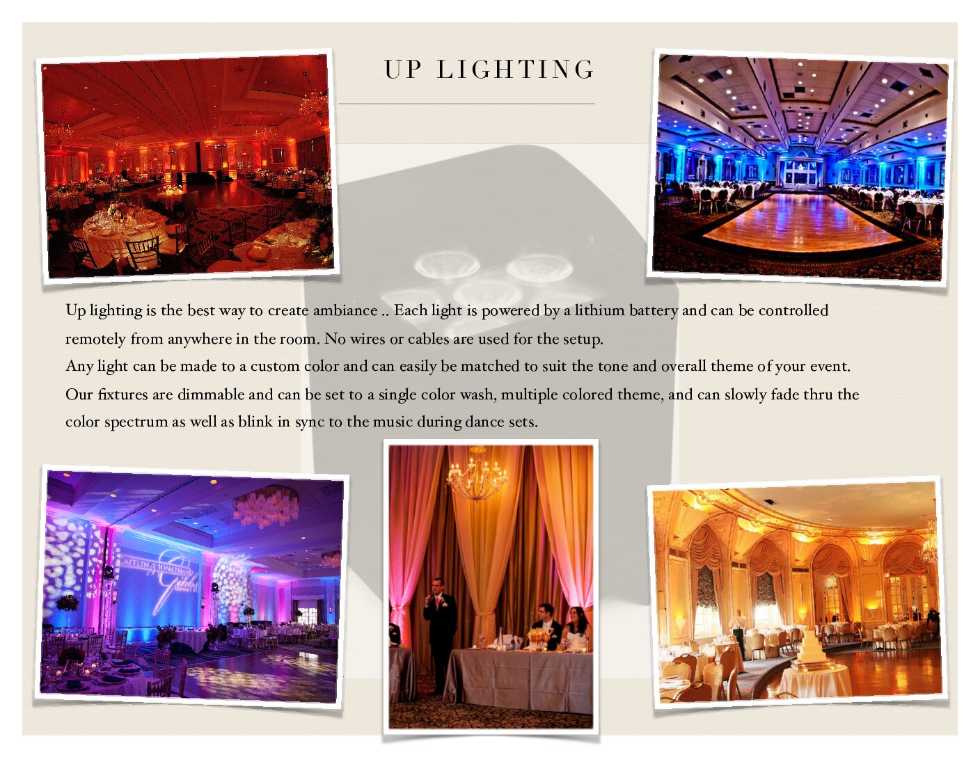The proper placement of uplighting can do wonders for your space, and your pictures. Enhance beautiful architecture, unique features and paint your entire venue with your colors.